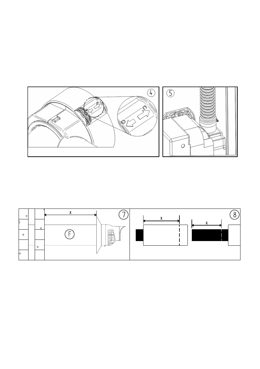 7. Fit the flue terminal (F) and measure the excess length, X.