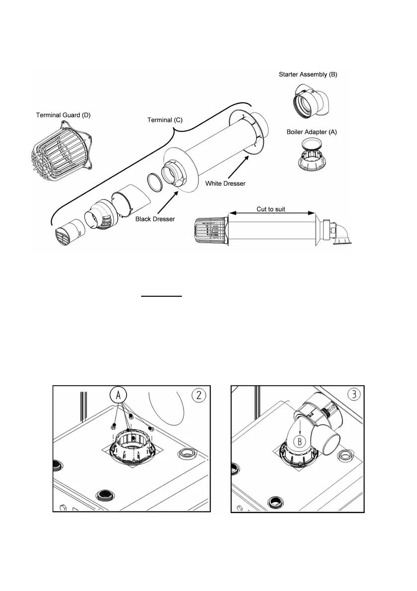 1. Fit the flue thermostat BEFORE fitting the flue kit. Refer to section 8.1.3.