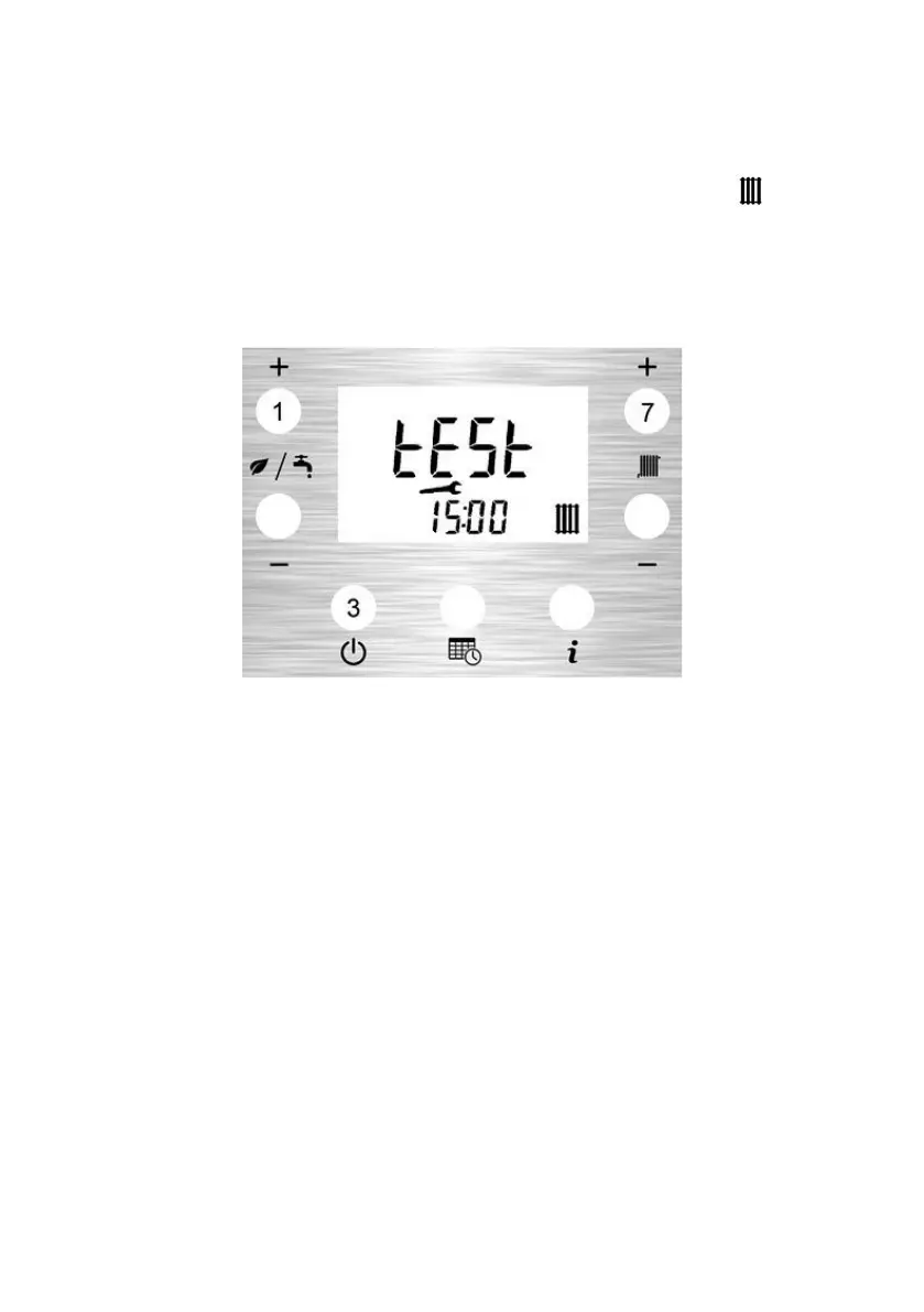 Test mode can be activated by pressing the DHW+ button (1) and CH+ button (7) for 10