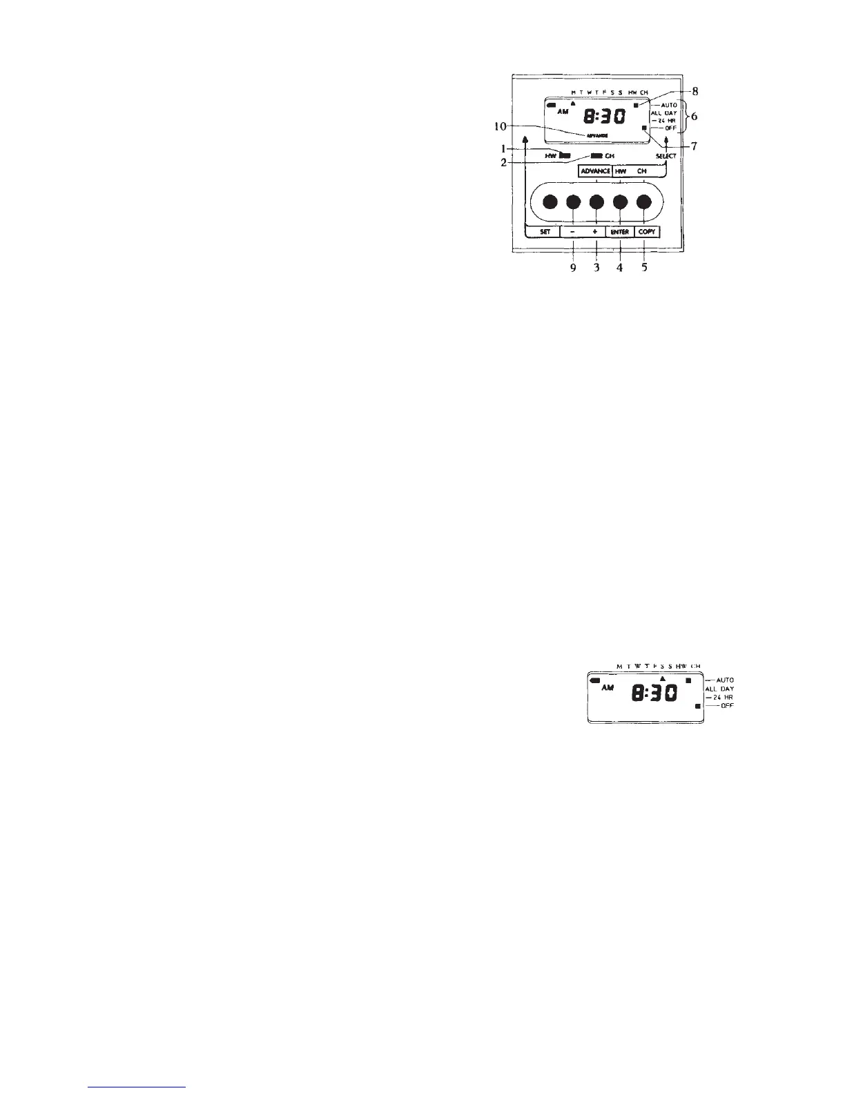 4. Hot water programme select button.