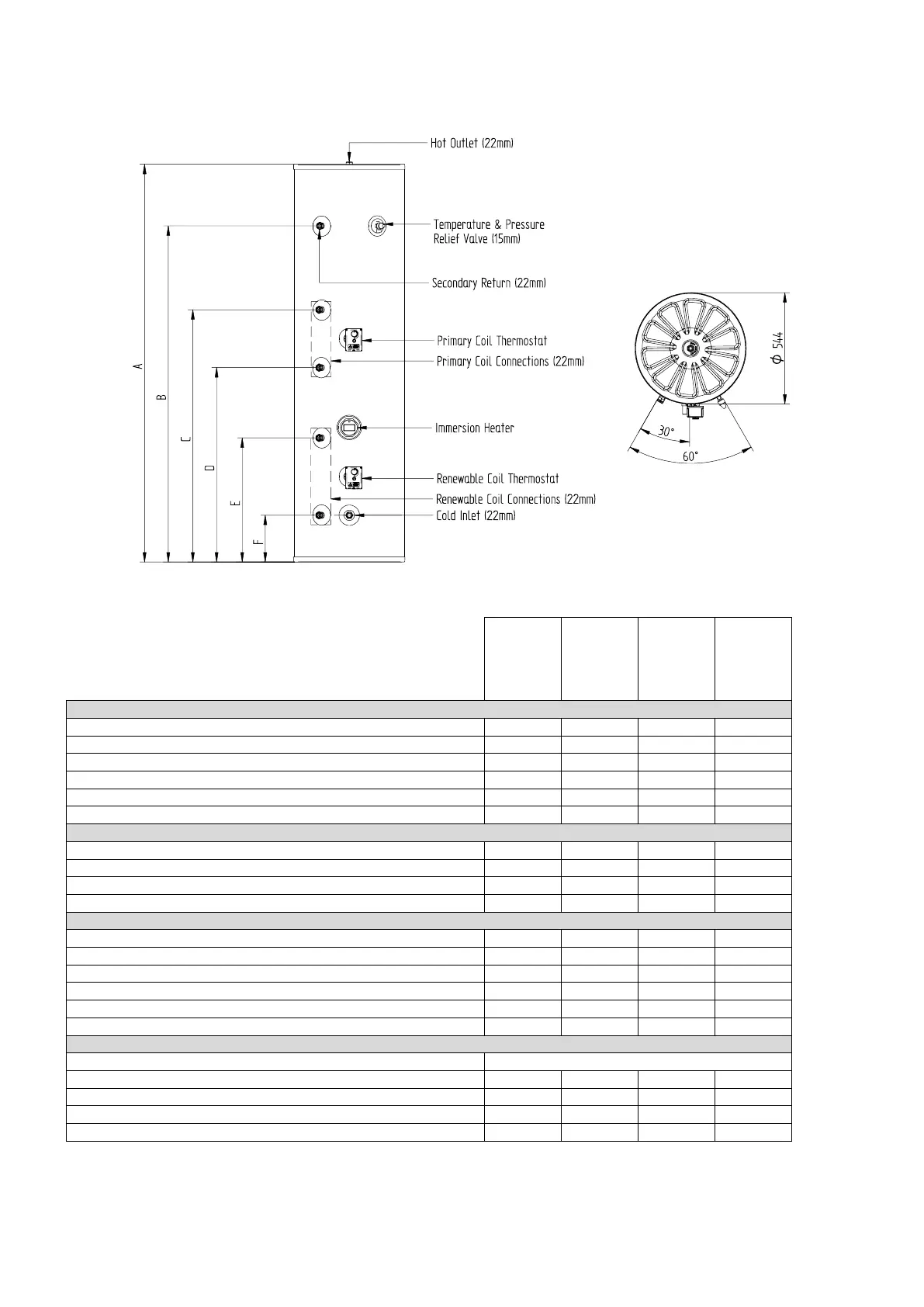 (F) Cold inlet connection / Renewable coil lower connection (mm)