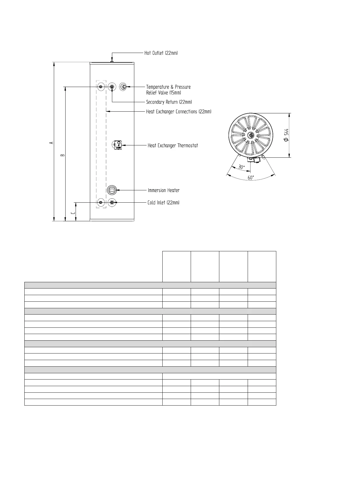 Figure 4: Heat Pump cylinders components & dimensions