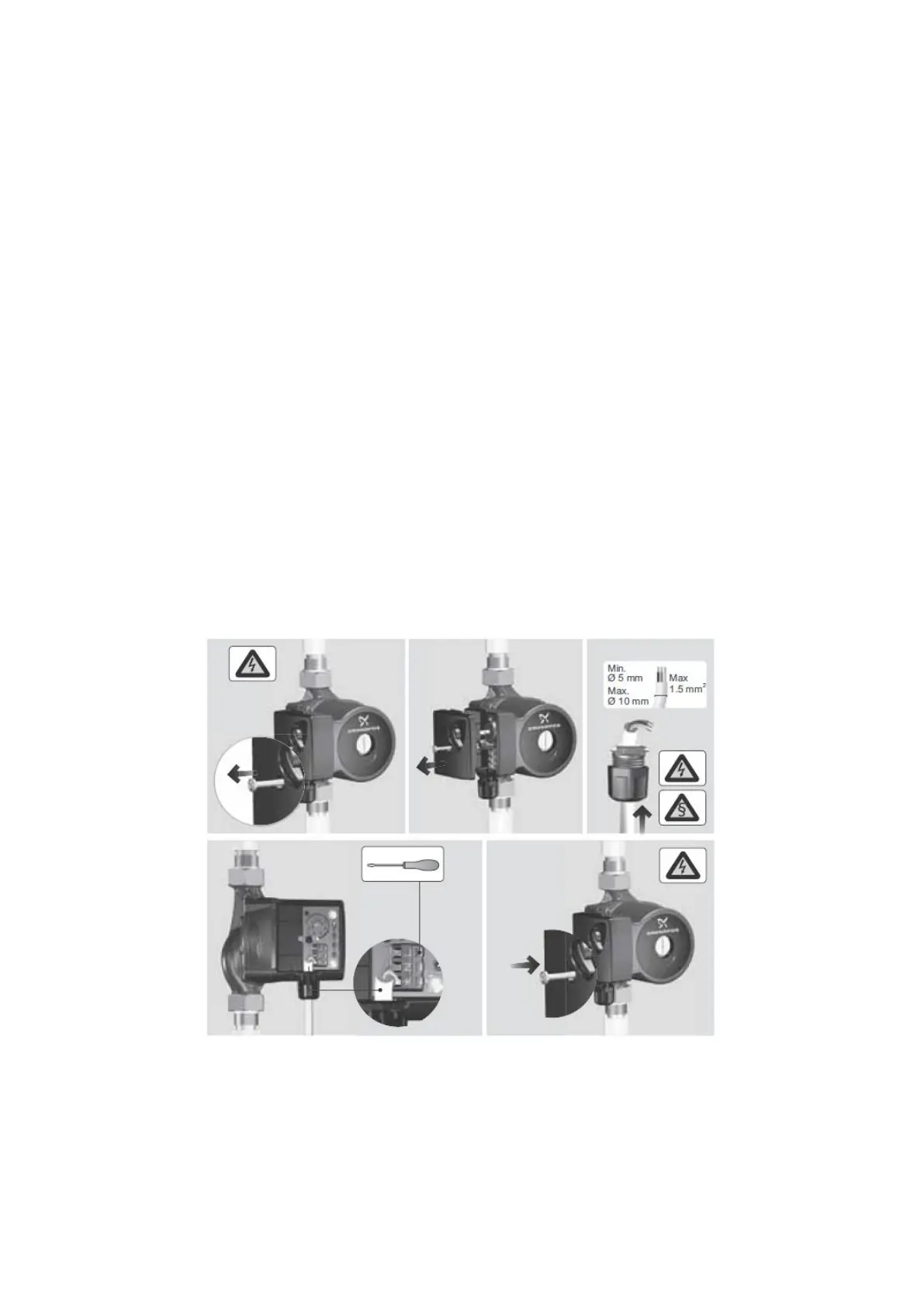 The pump must be connected to an external double pole mains switch.