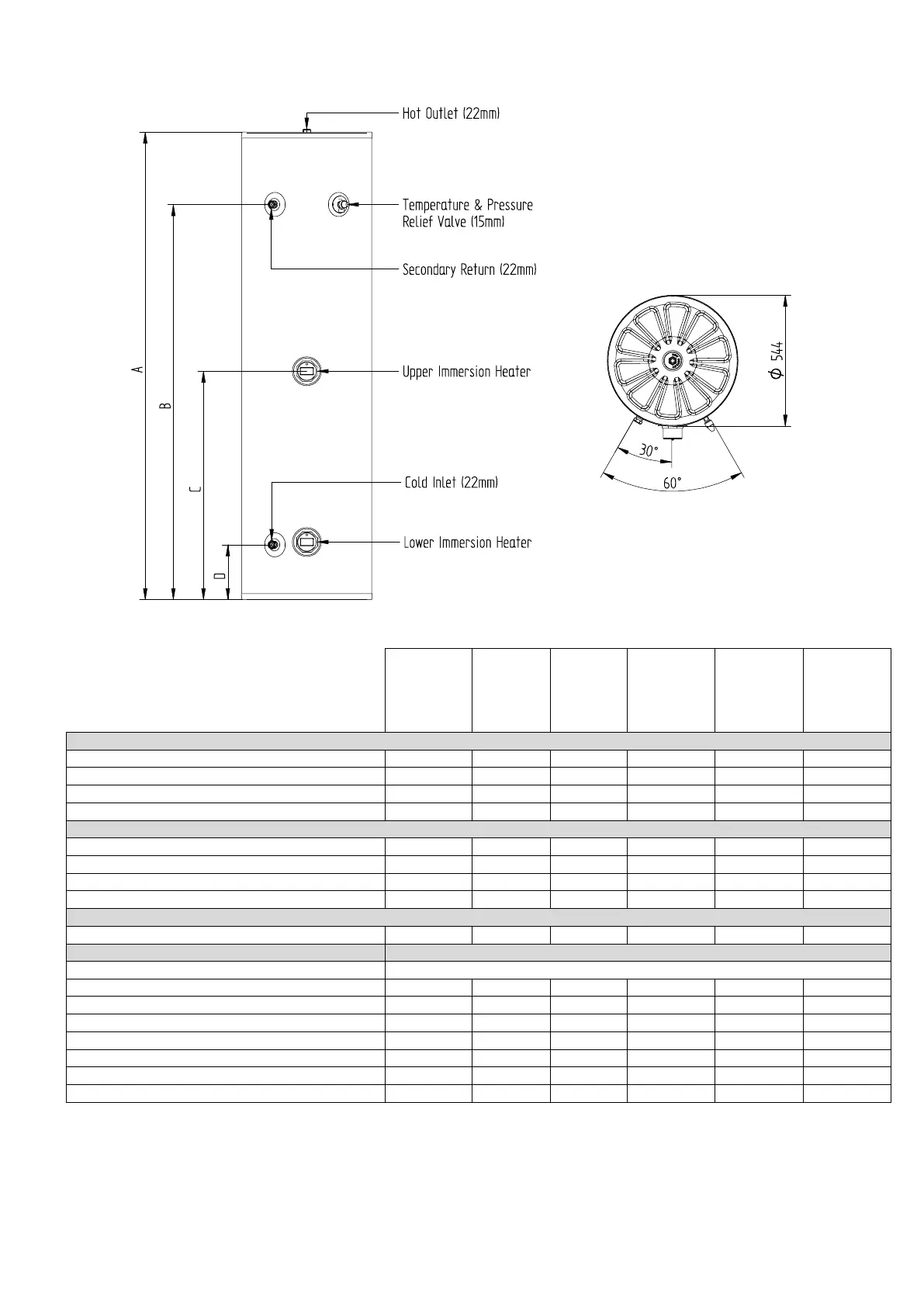 Data listed with SMART Immersion thermostat fitted to lower position.