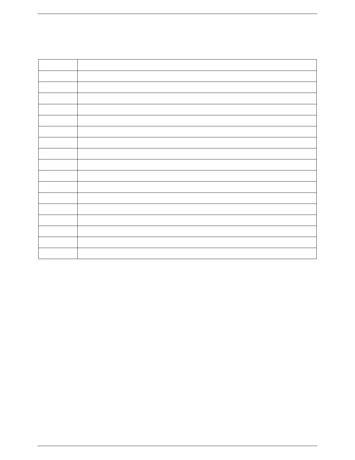 Table 11: Short parts list