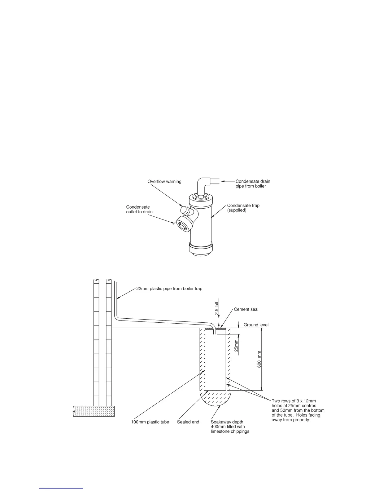 sealing condensate trap. The trap has been fitted inside the boiler casing to the right