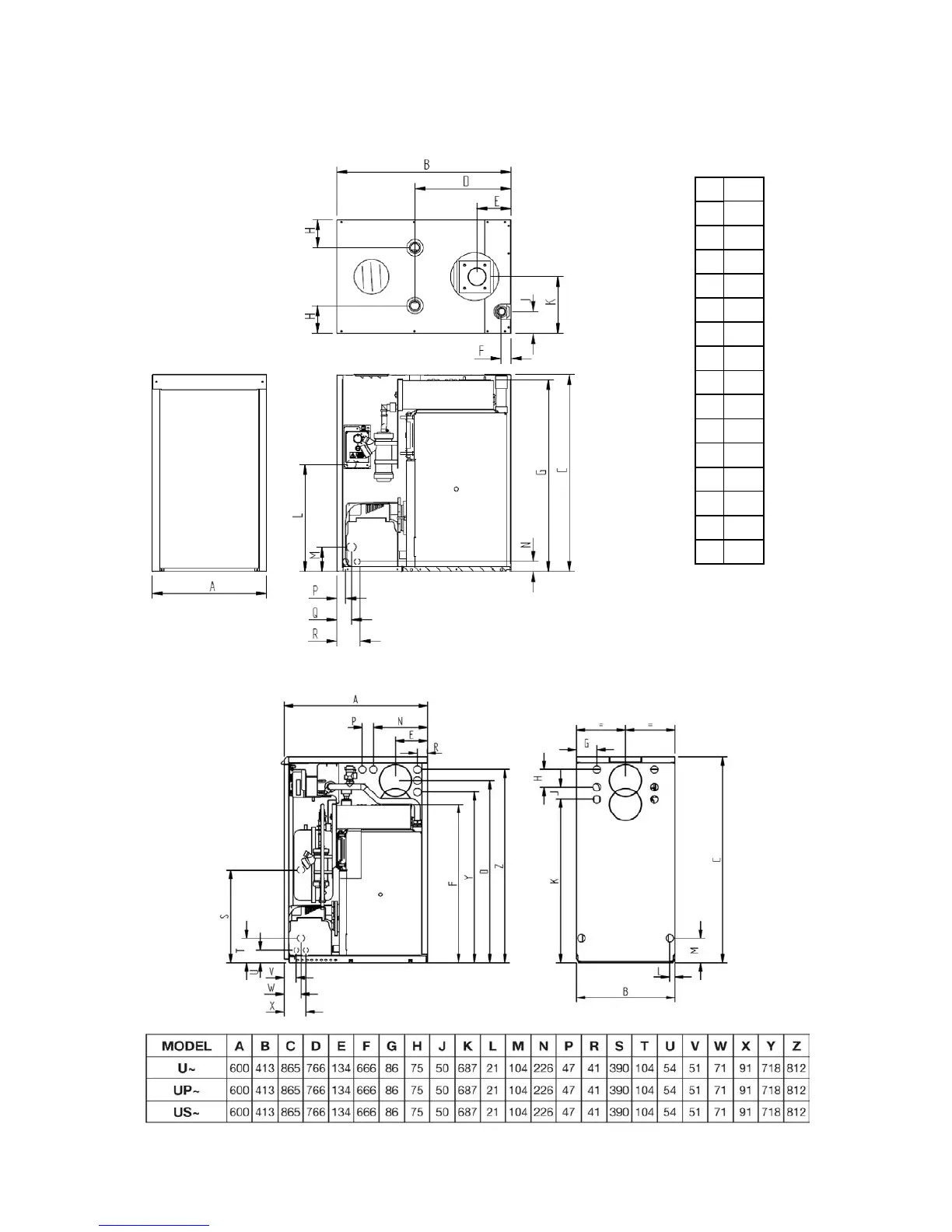 WarmFlow Utility U90HE - Dimensions