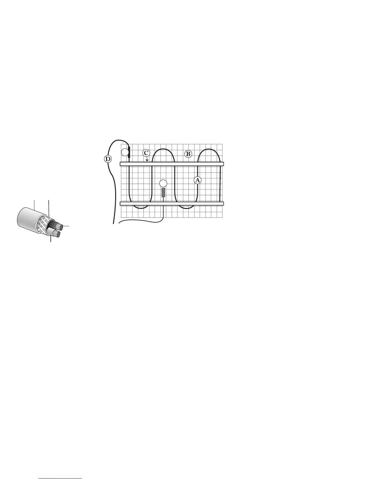 Heating Roll and must run back to the power supply along the perimeter of the heated space. The power lead (D) is