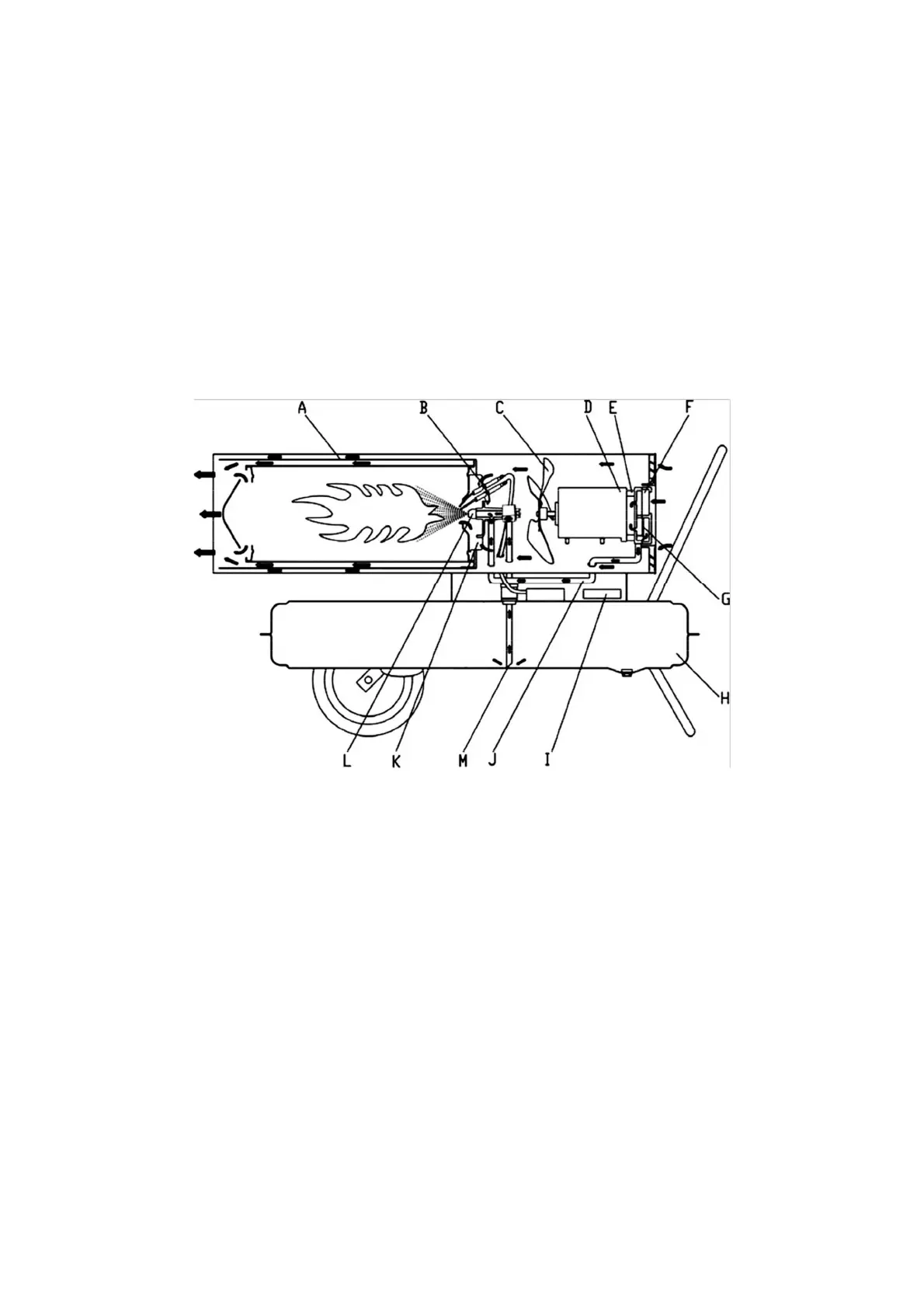 K. Vaste vlamplaat L. Oliesproeier M. Olieaanzuigleiding