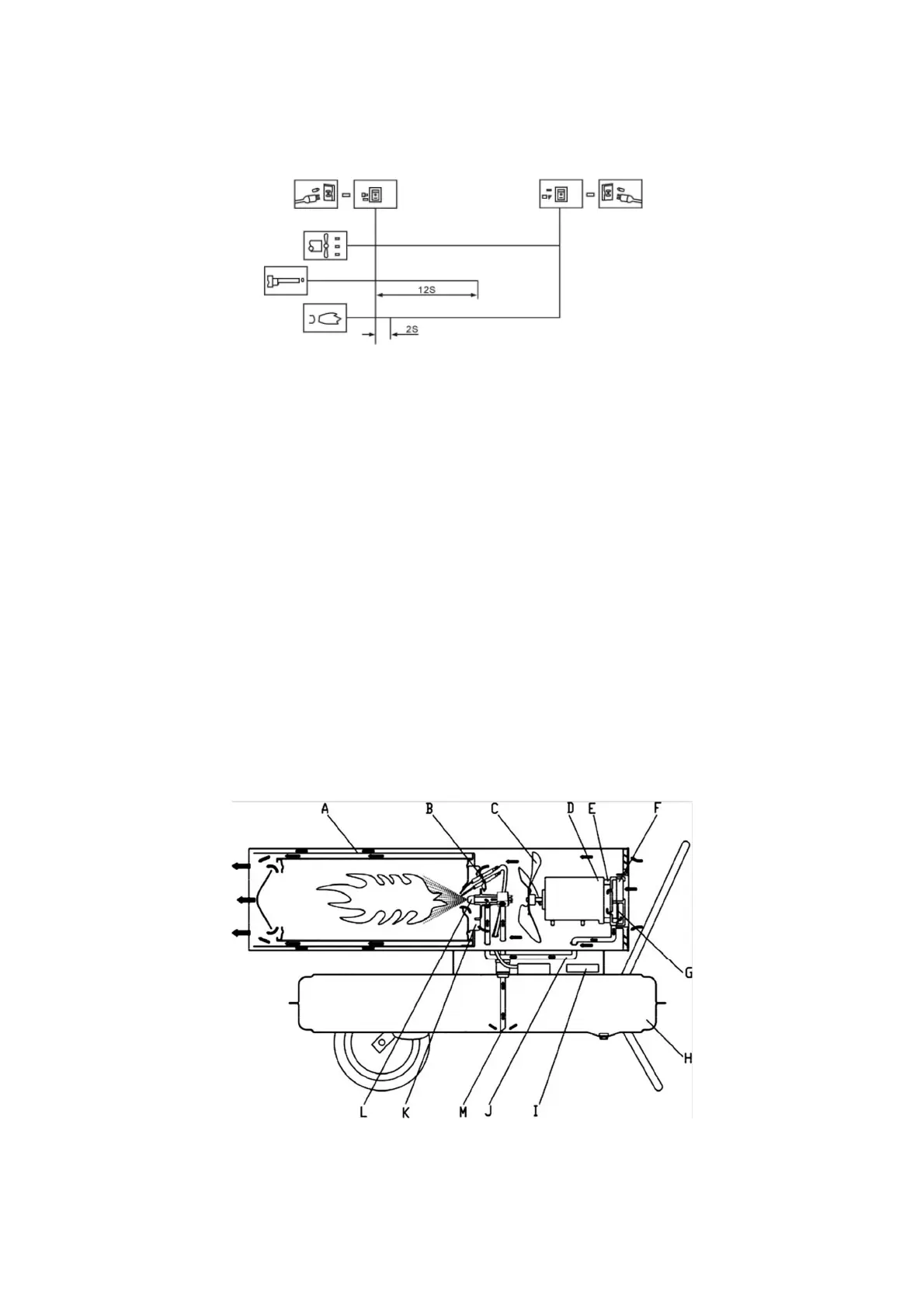 K. Flame steady plate L. Oil nozzle M. Oil sucking pipe