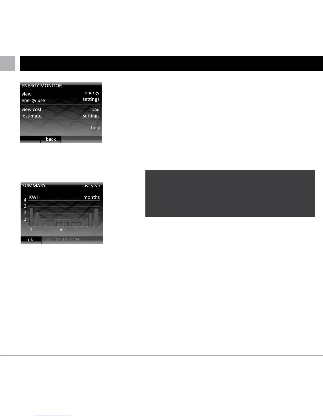 Press “OK” to return to the ENERGY MONITOR menu.