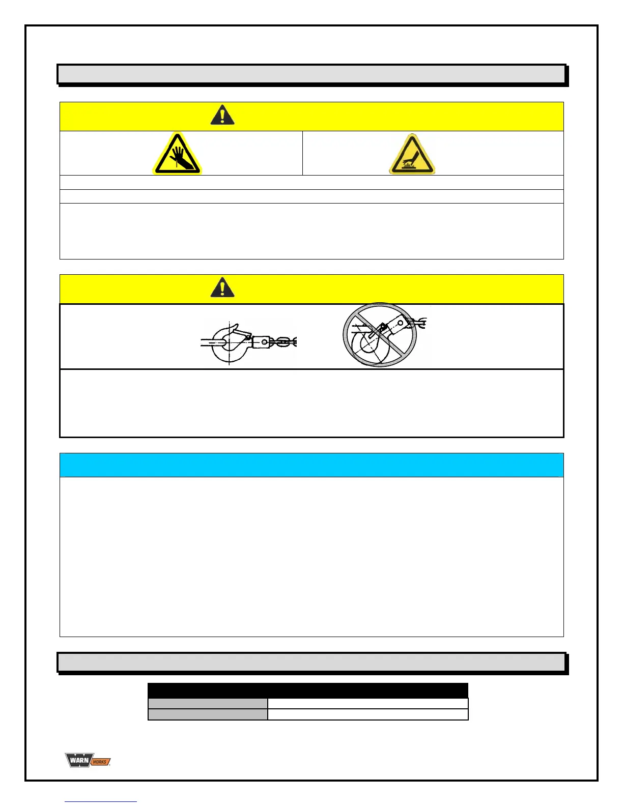 • Toujours penser aux surfaces chaudes au niveau du moteur du treuil, du tambour ou du câble durant ou après