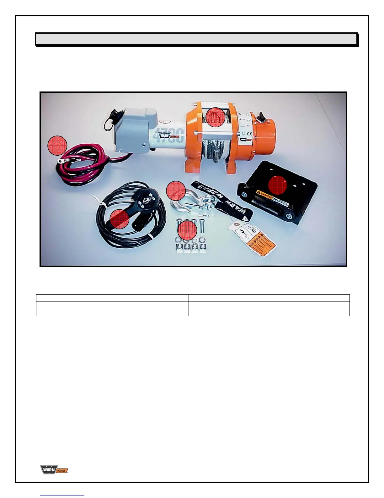 1. Unità verricello Works 4700 2. Interruttore a distanza con 12 piedi (3,7 m) di cavo