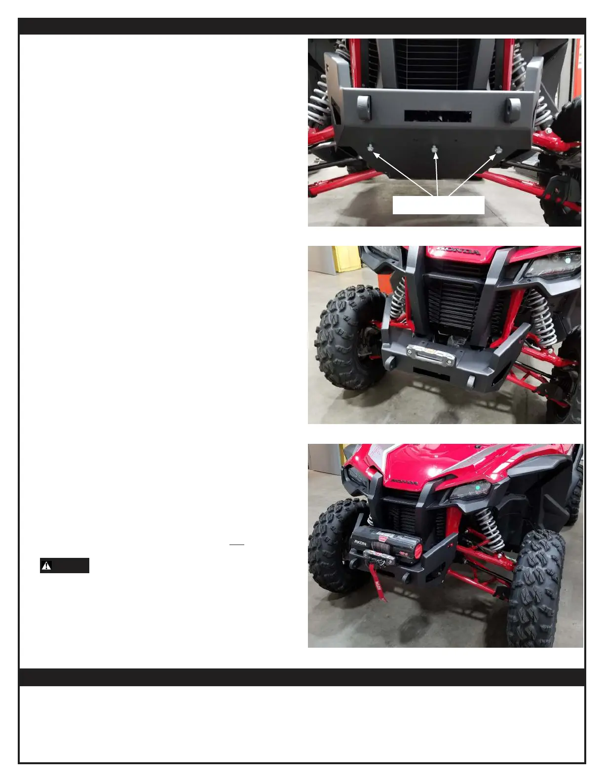 2. Inspect all nuts and bolts on the winch, winch mount,, and related hardware prior to each use. Tighten all nuts that appear to be