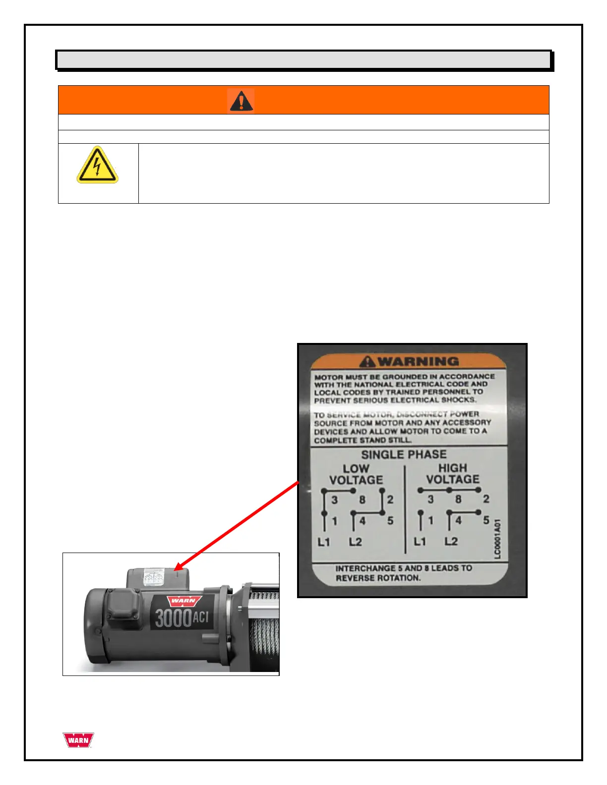 Always wire the winch in accordance with all local building and electrical codes.