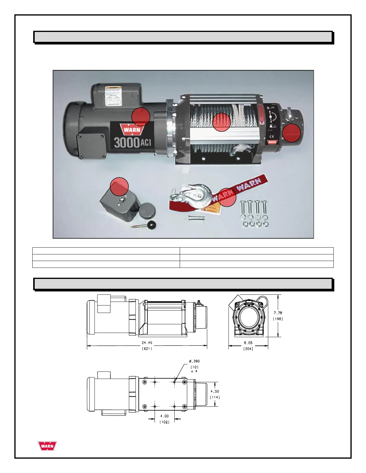 Dimensioner för WARN 3000ACI
