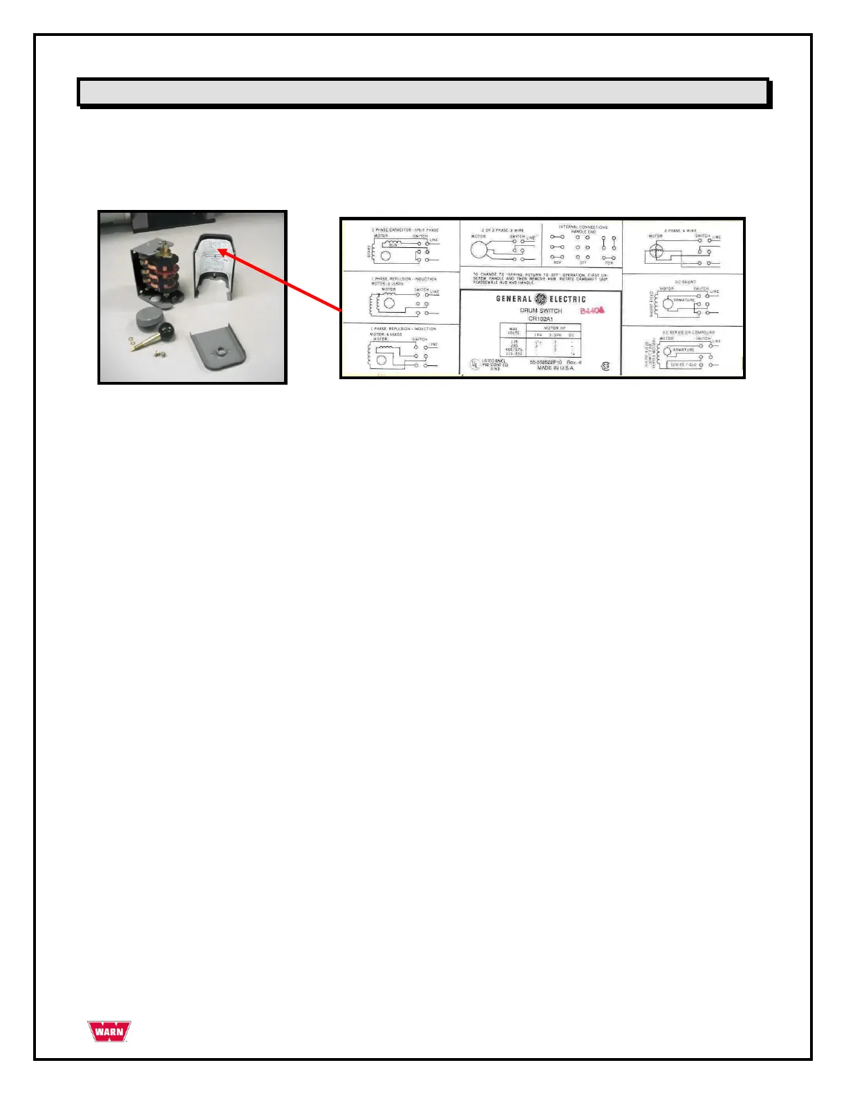 Convert GE Drum Switch CR102A1 to ―Spring Return to OFF‖ configuration per instructions enclosed with