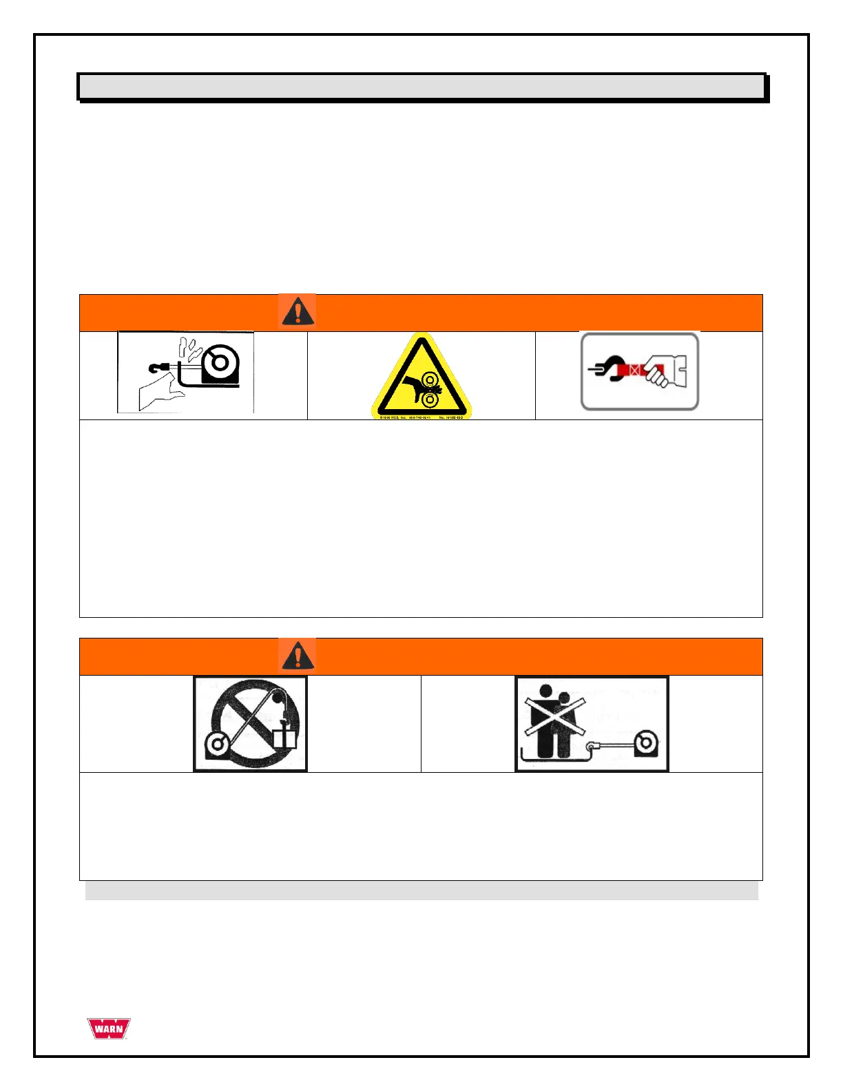 • Mantenha sempre as mãos longe do cabo de aço, laço do gancho e abertura do fairlead durante a instalação,