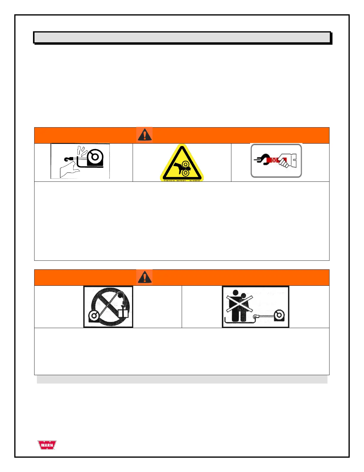 • Always use supplied hook strap whenever spooling wire rope in or out, during installation or operation to avoid injury
