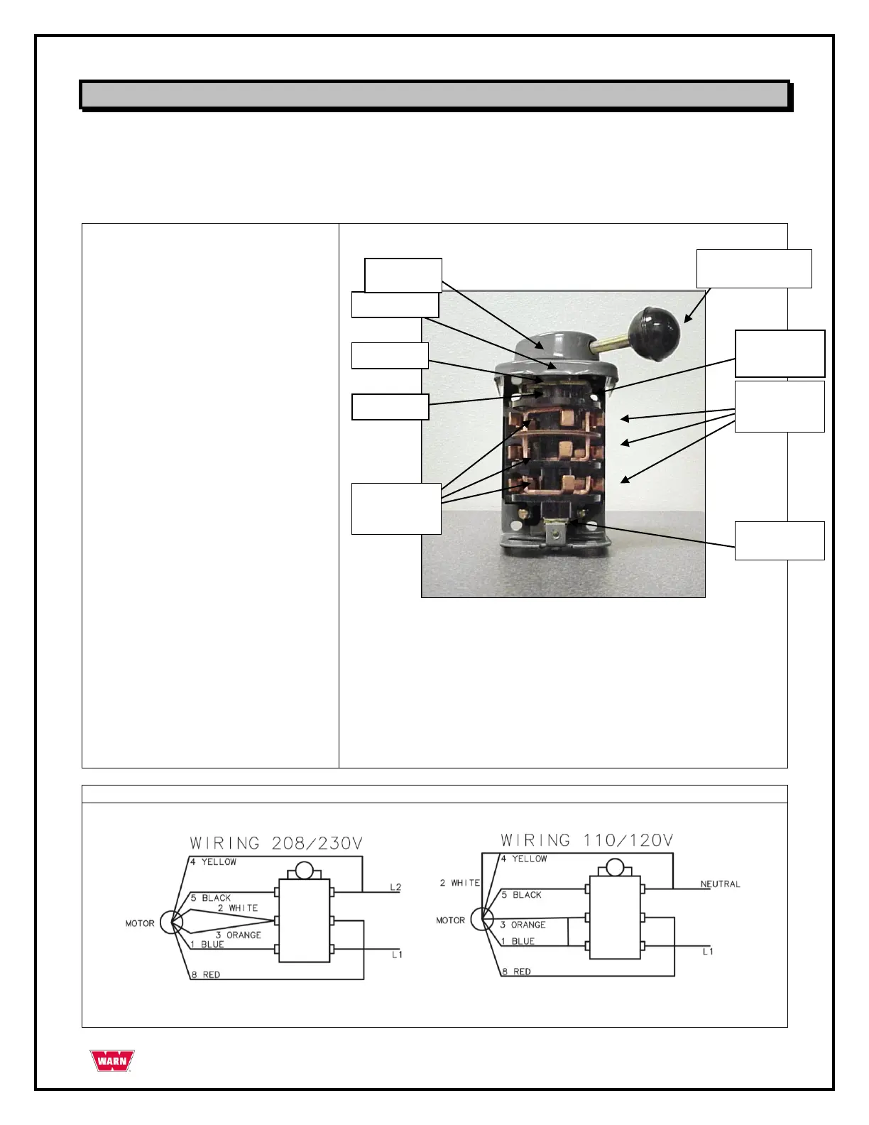 référence. Toujours se référer aux schémas figurant sur le moteur du treuil et dans l'interrupteur du tambour.