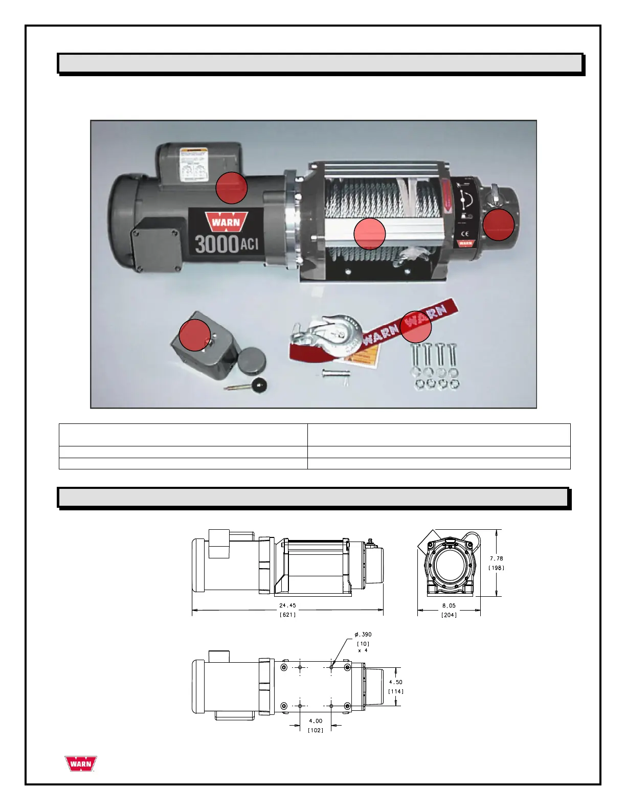 Dimensioni del WARN 3000ACI