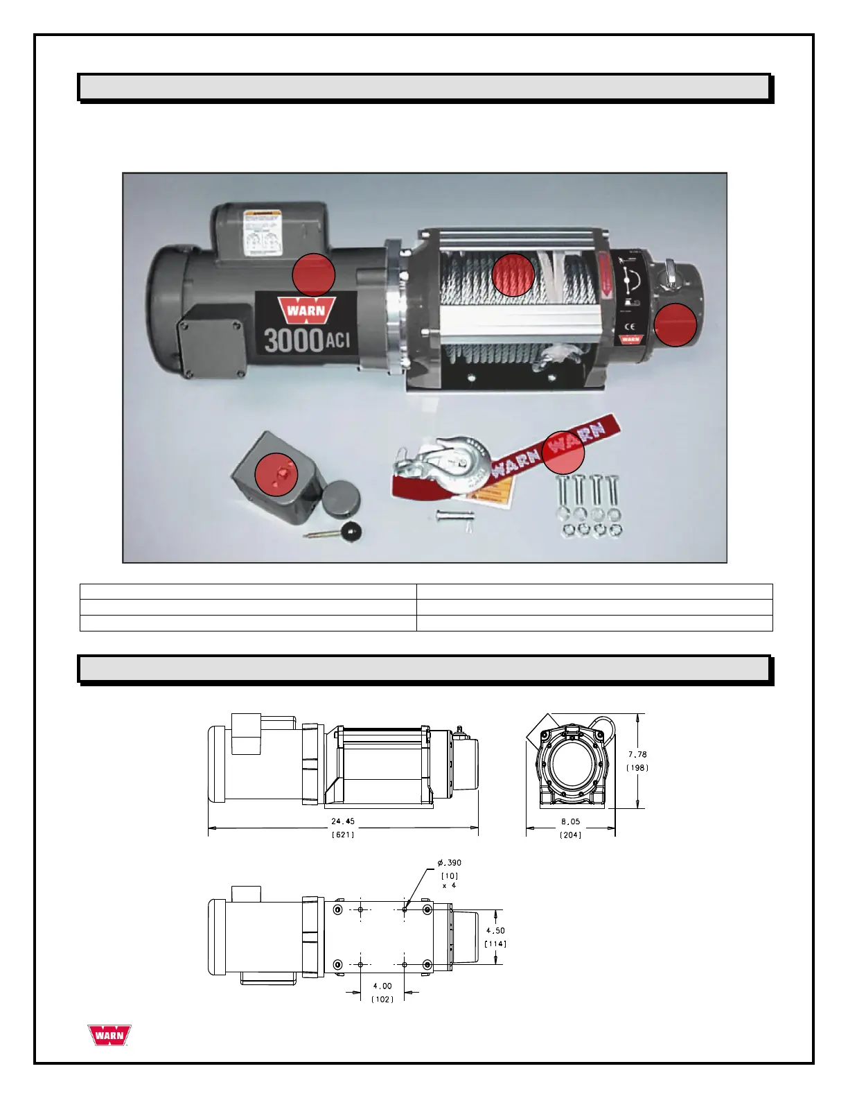 Afmetinggegevens voor de WARN 3000ACI