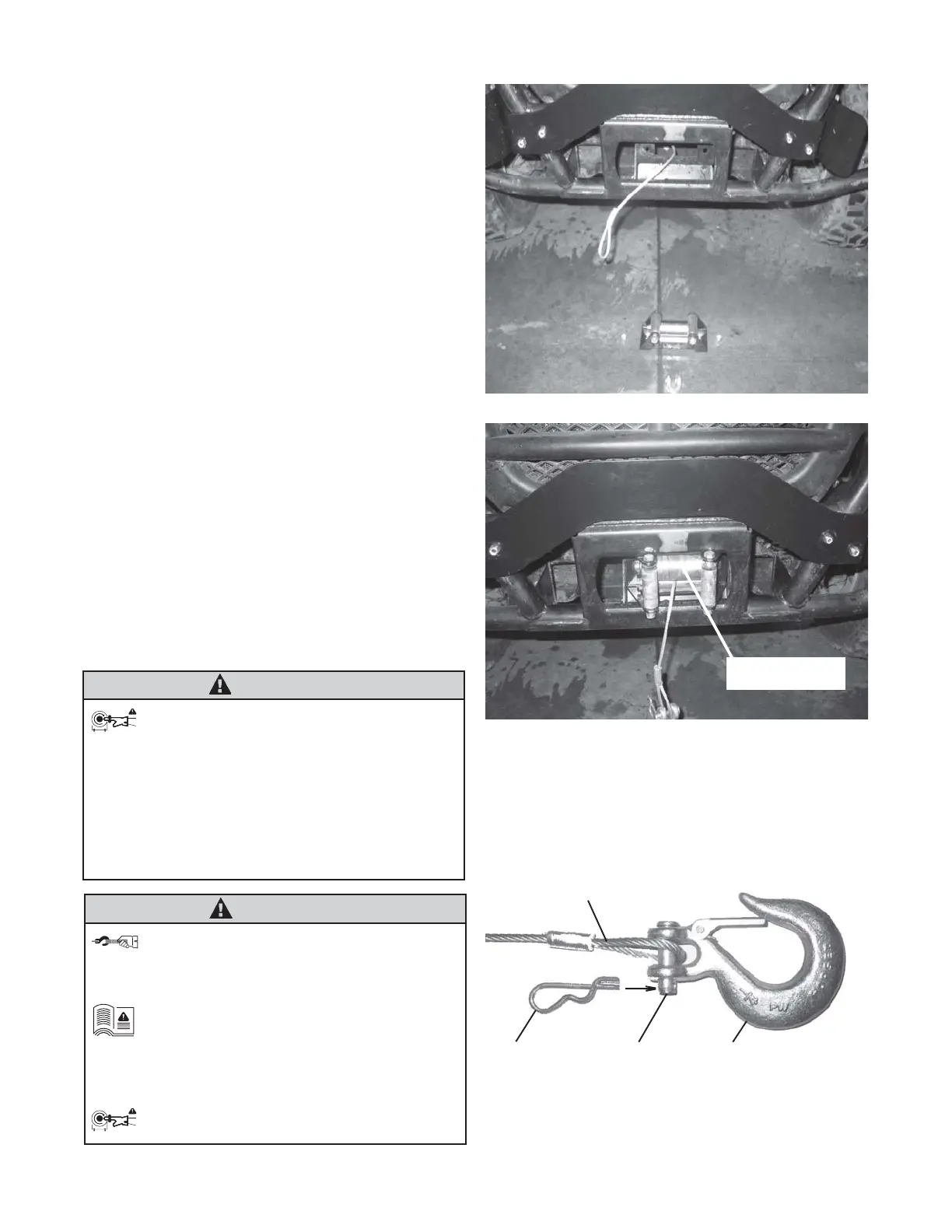 winch hook properly installed. ALWAYS