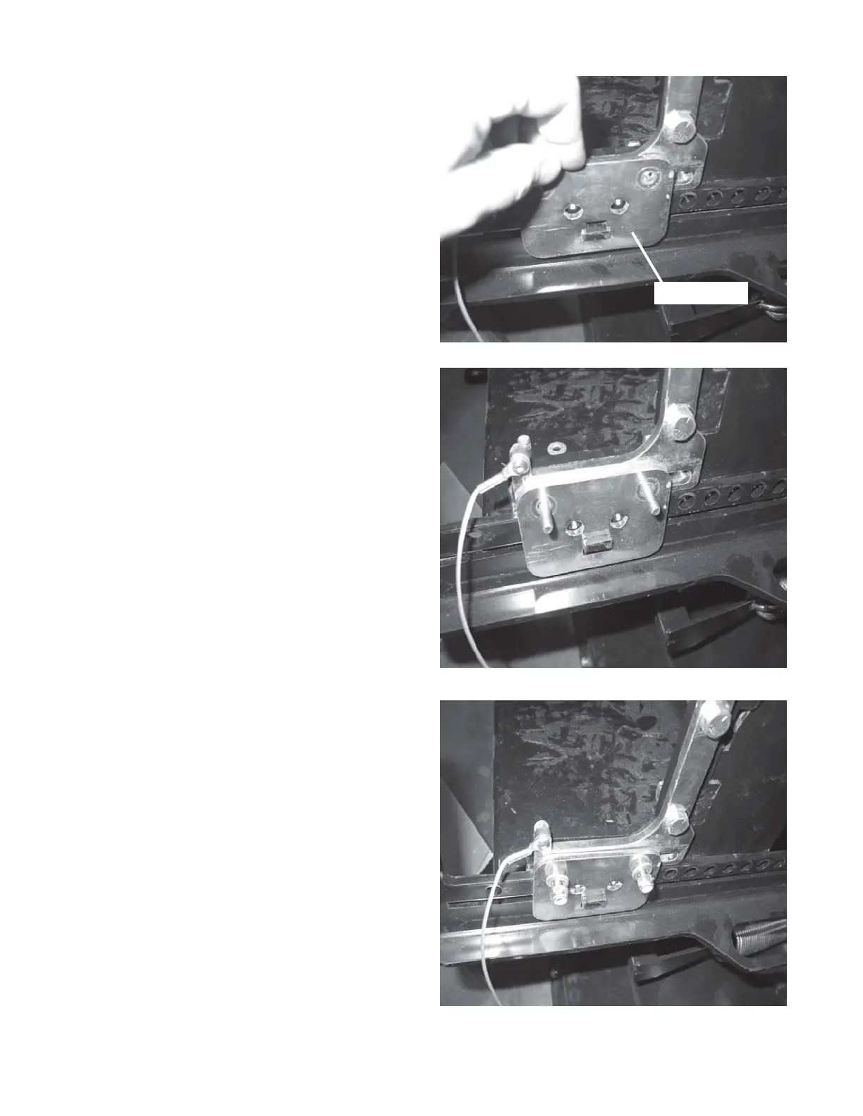 Figure 35 Install retainer plate to plow support tab and engage