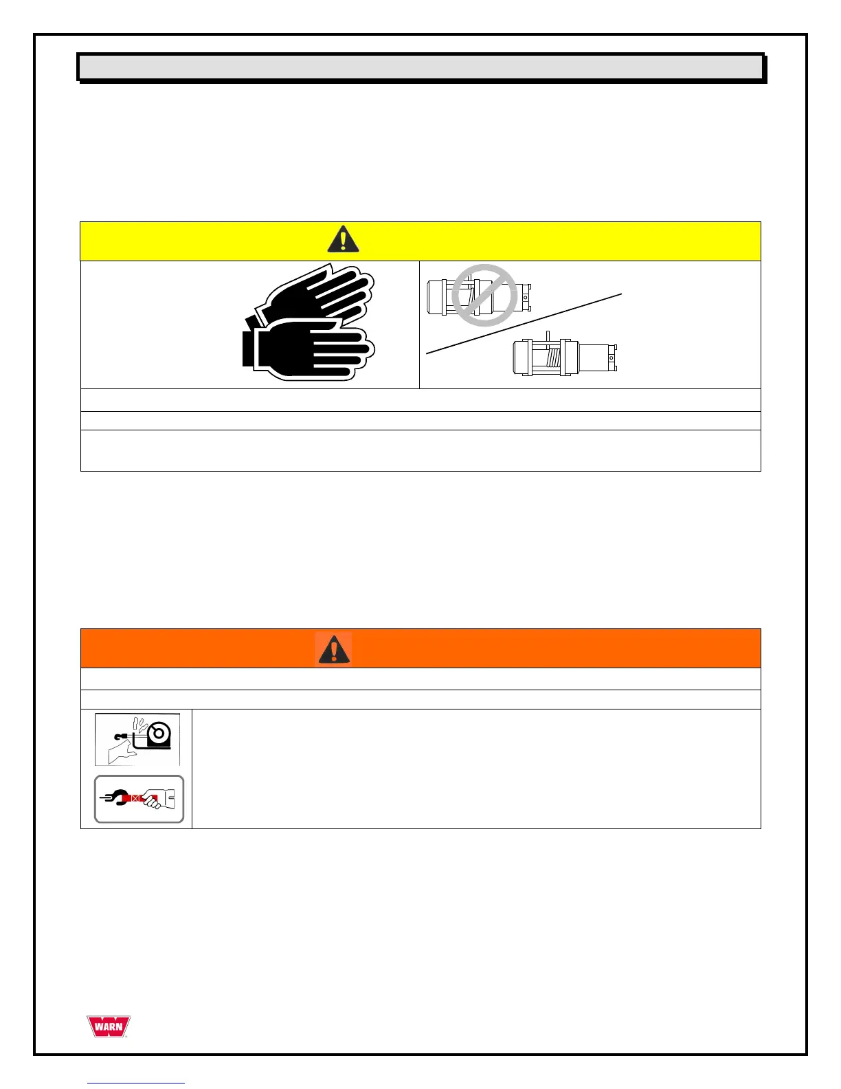 ALWAYS keep hands clear of the wire rope, hook loop, hook and fairlead opening