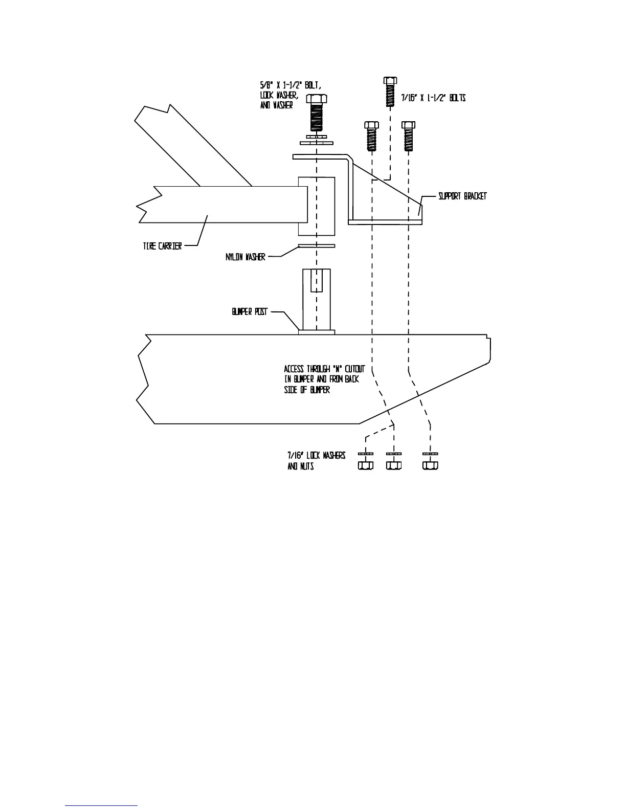 11. Once the tire carrier and support bracket are assembled, torque the 7/16” hardware
