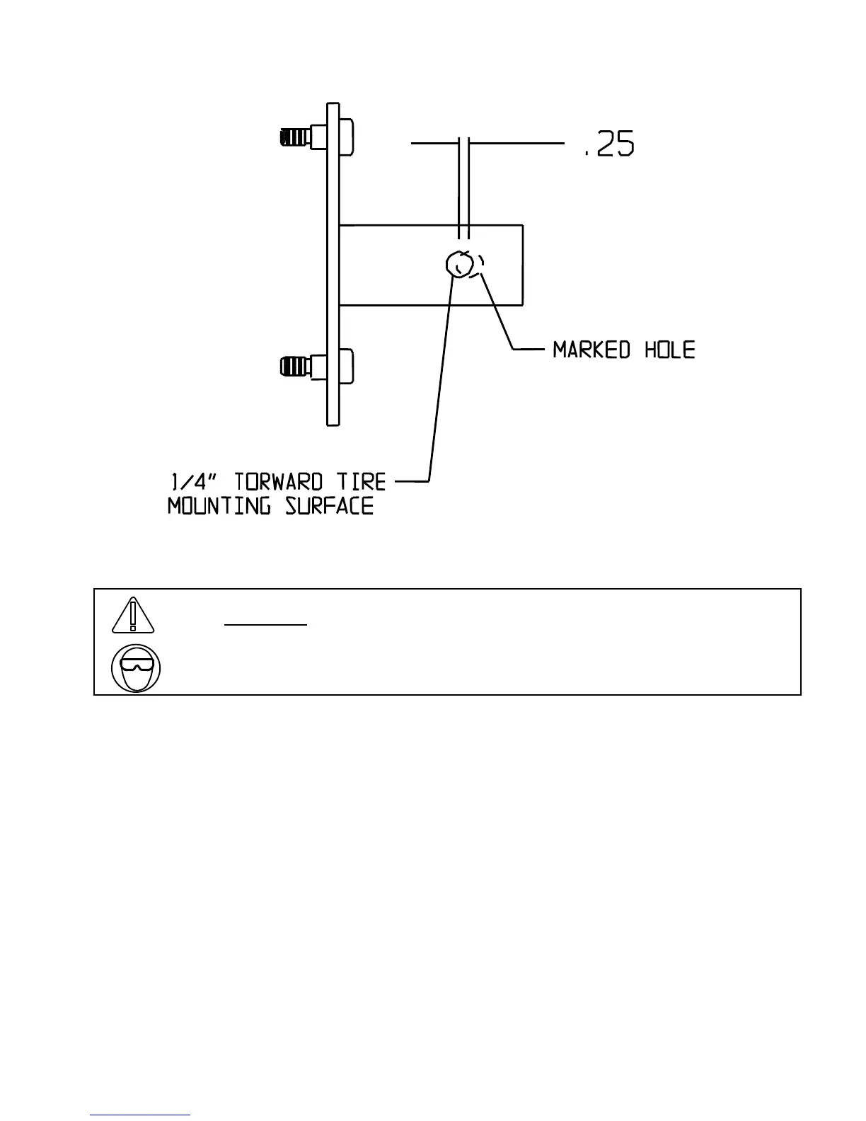 tire carrier. Using the supplied ½” x 3” bolt, washers, and lock nut, bolt the mounting