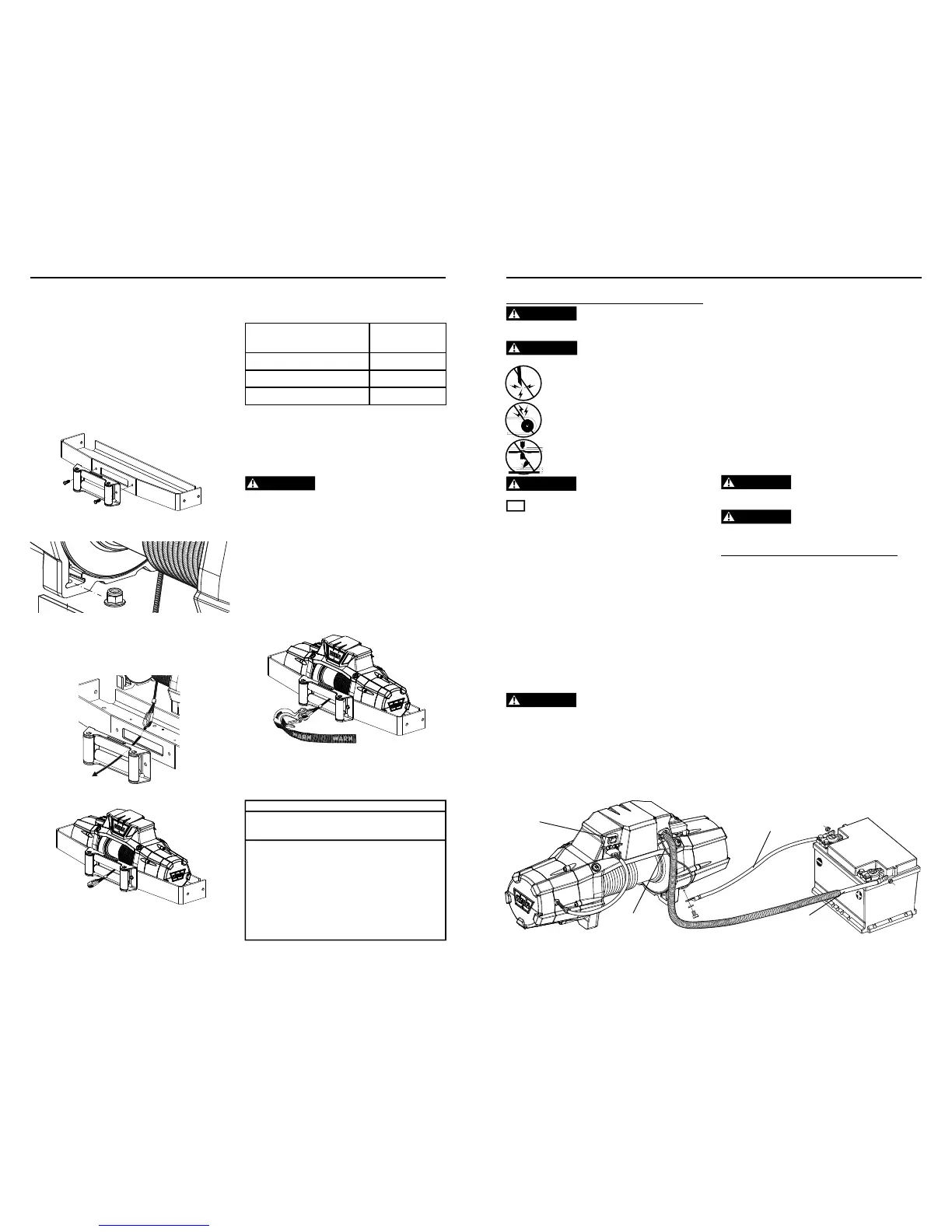 6. Installer le treuil sur la surface de montage.