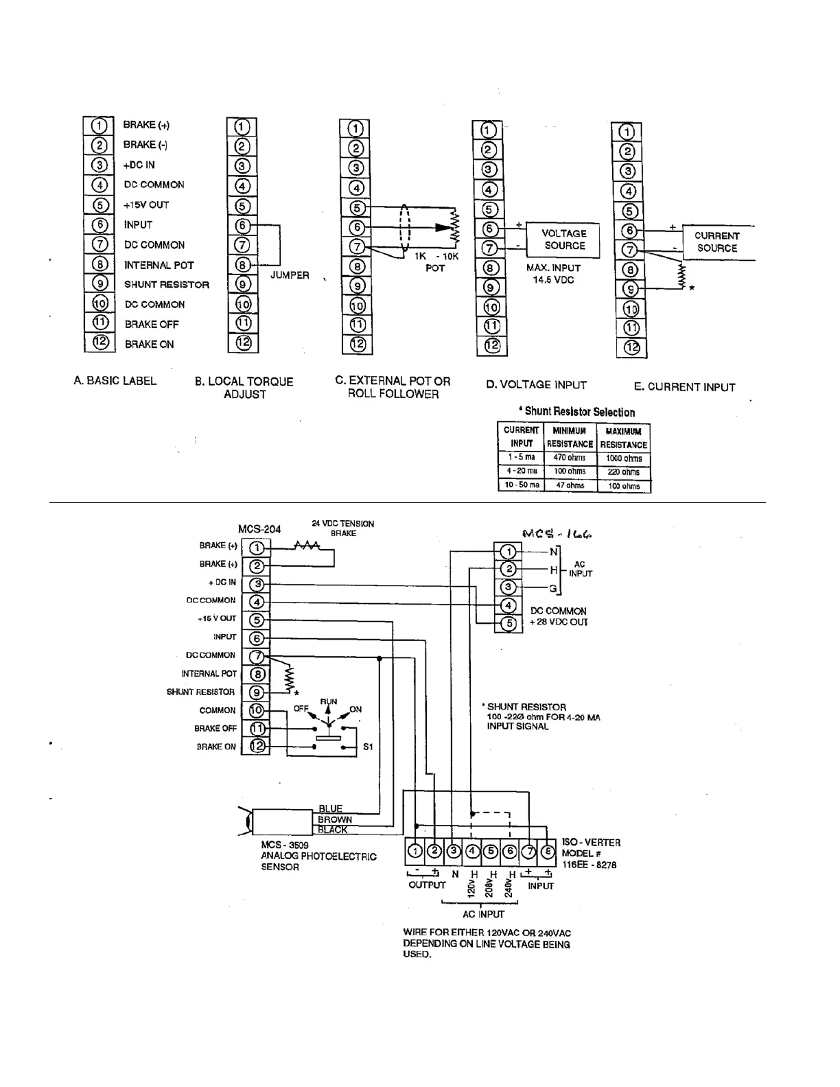 Warner Electric MCS-203 - MCS-204 Input Configuration Options; Voltage and Current Input Setup