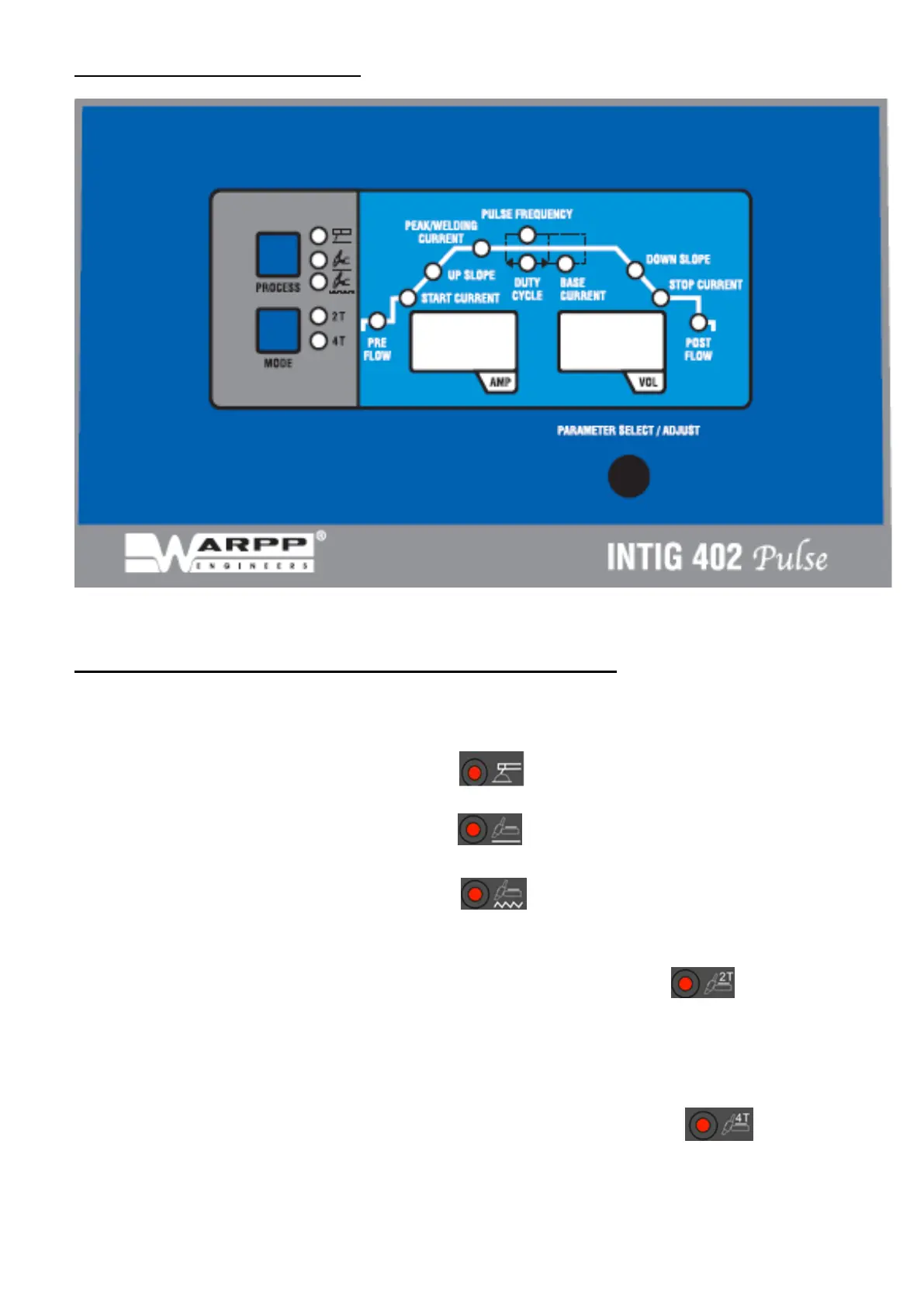 WARPP INTIG 402 PULSE - Front Panel Description and Operation; Process and Mode Switches