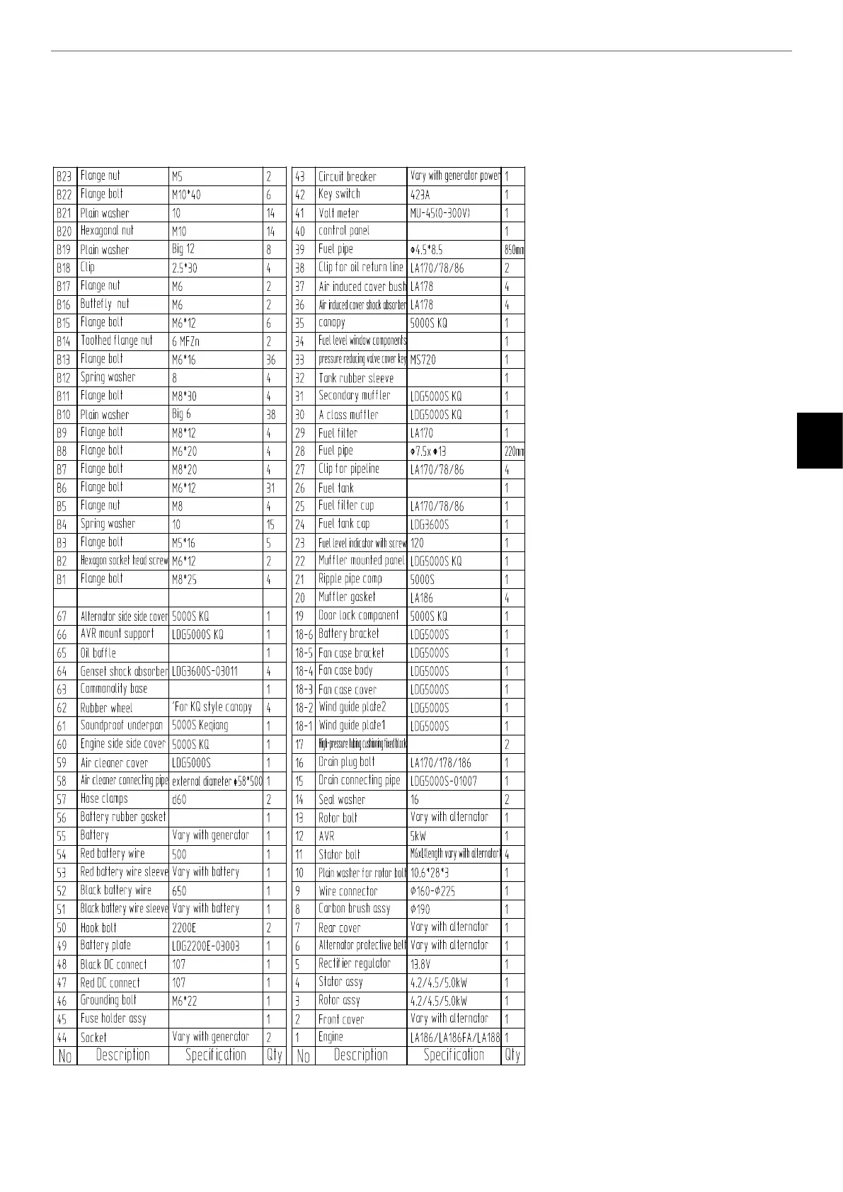 PARTS LIST