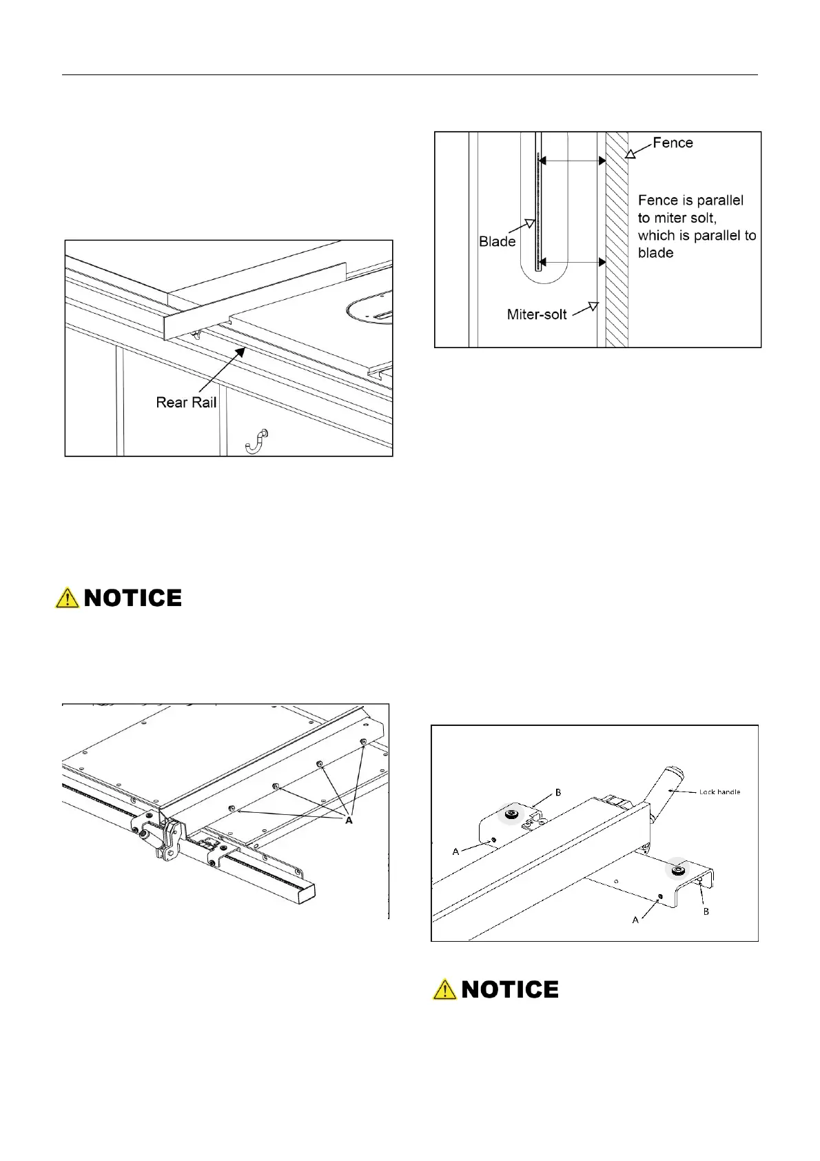 parallelism between fence and blade, also you can