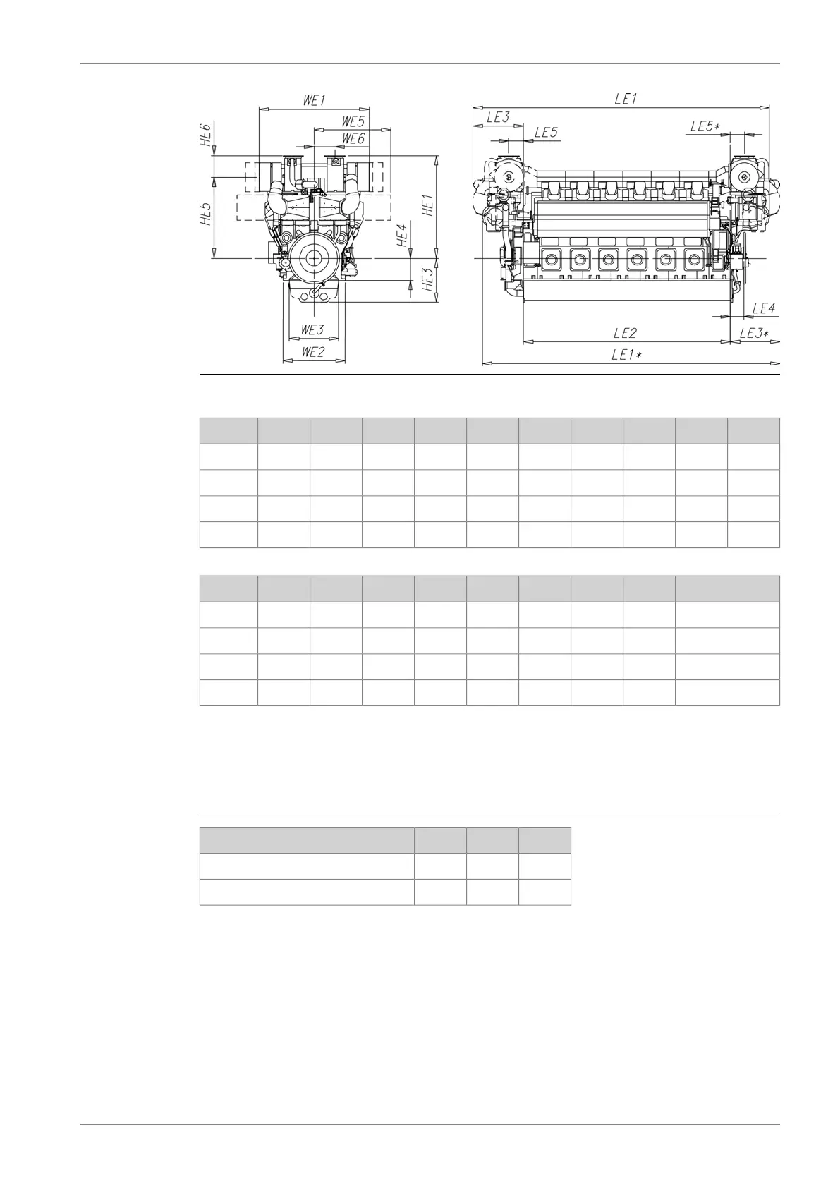 All dimensions in mm. The weights are dry weights of rigidly mounted engines without flywheel.