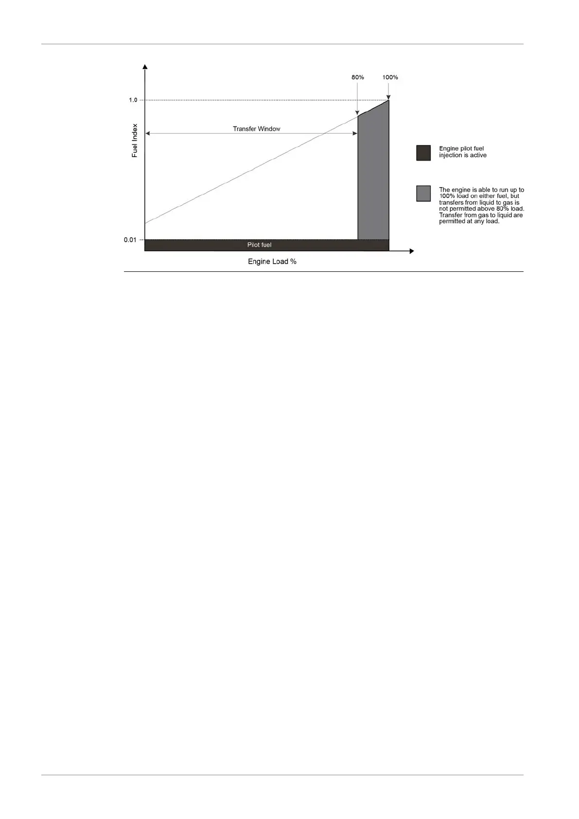 ● If engine load is within the transfer window, the engine will be able to switch fuels without