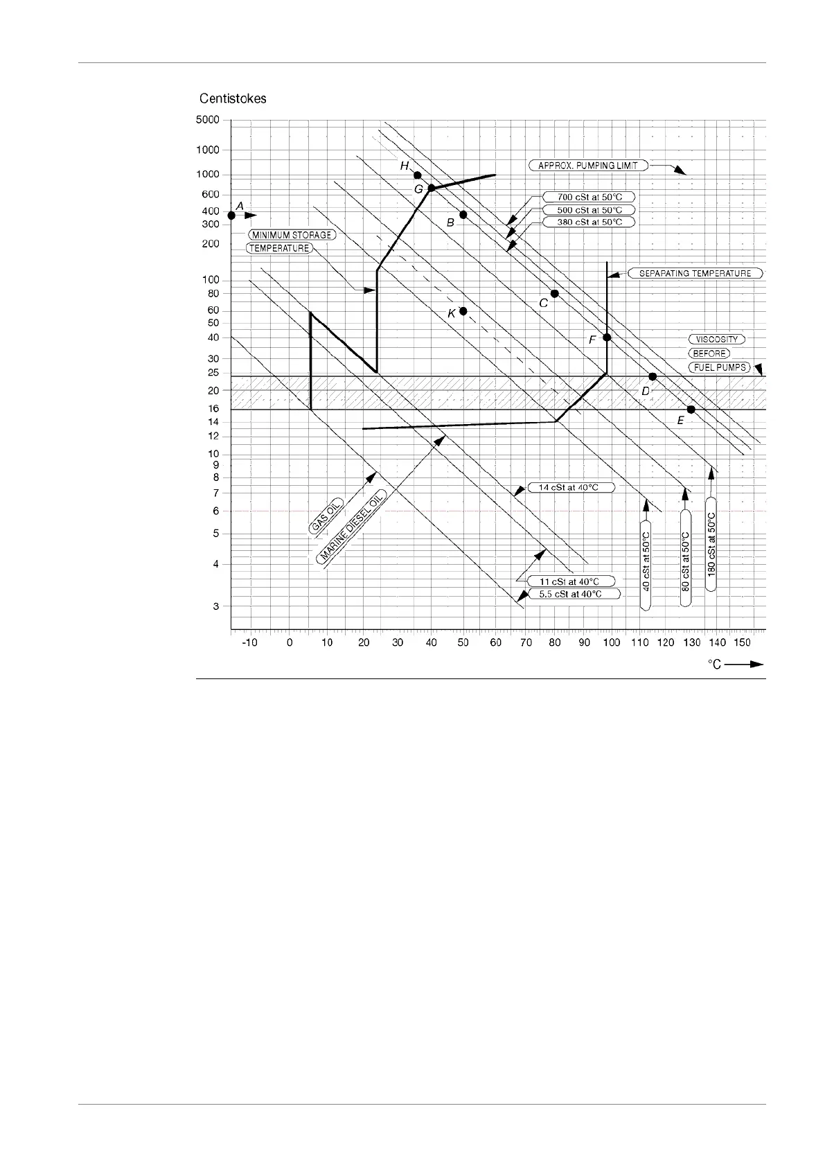 and to minimum 40°C (G) in the bunker tanks. The fuel oil may not be pumpable below 36°C
