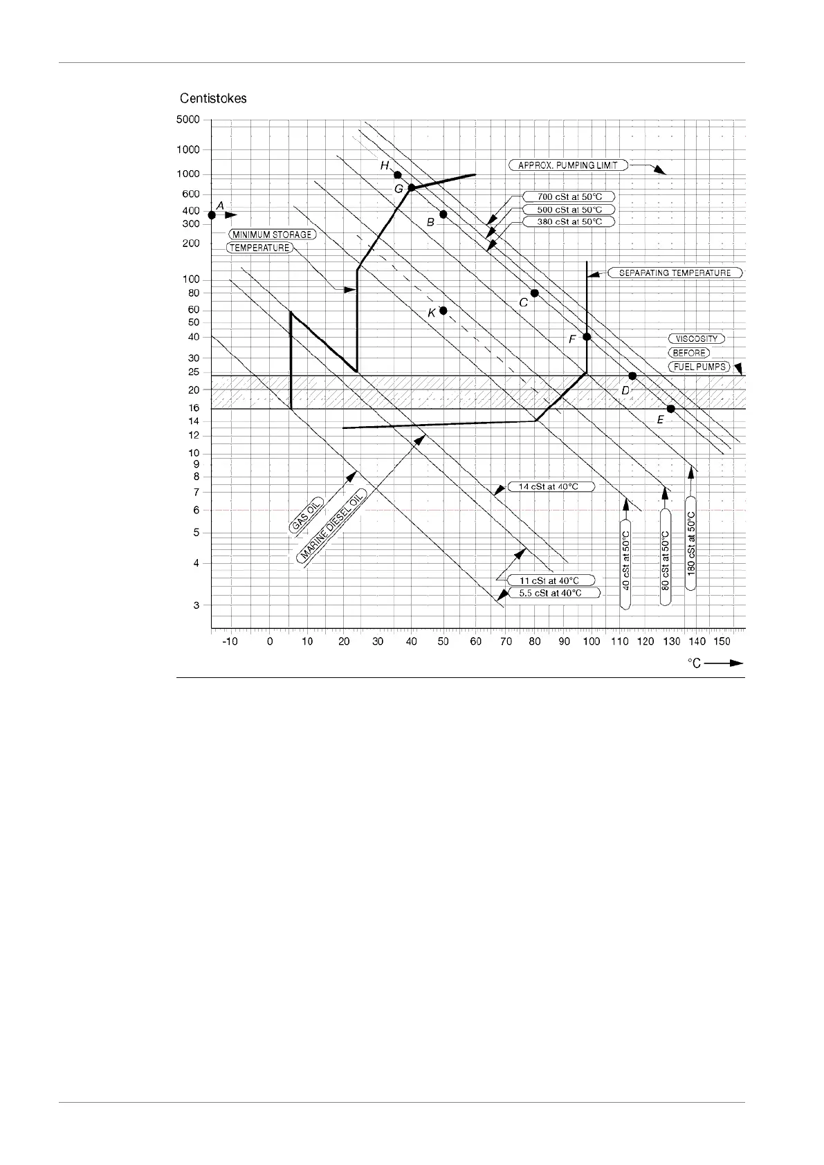 and to minimum 40°C (G) in the bunker tanks. The fuel oil may not be pumpable below 36°C