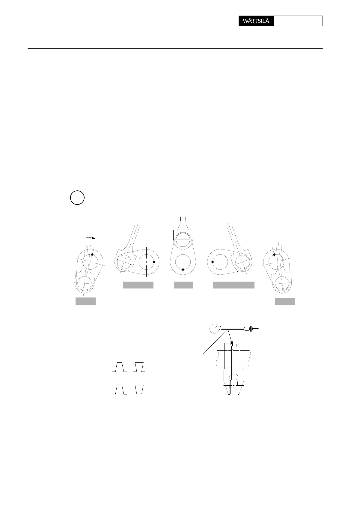 ⇒ Turn crankshaft by means of turning gear, reading the dial gauge in the shown