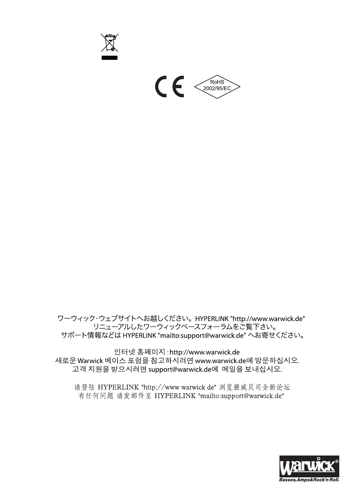 Branch China: Warwick Music Equipment (Shanghai) Ltd., Co.• Shanghai Waigaoqiao Free Trade Zone • Shanghai 200131/P.R.China • E-Mail: info@warwick.cn