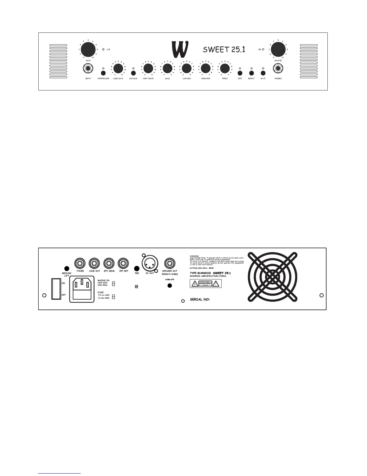 terminal with integrated fuse compartment for connecting the amplifier to mains.