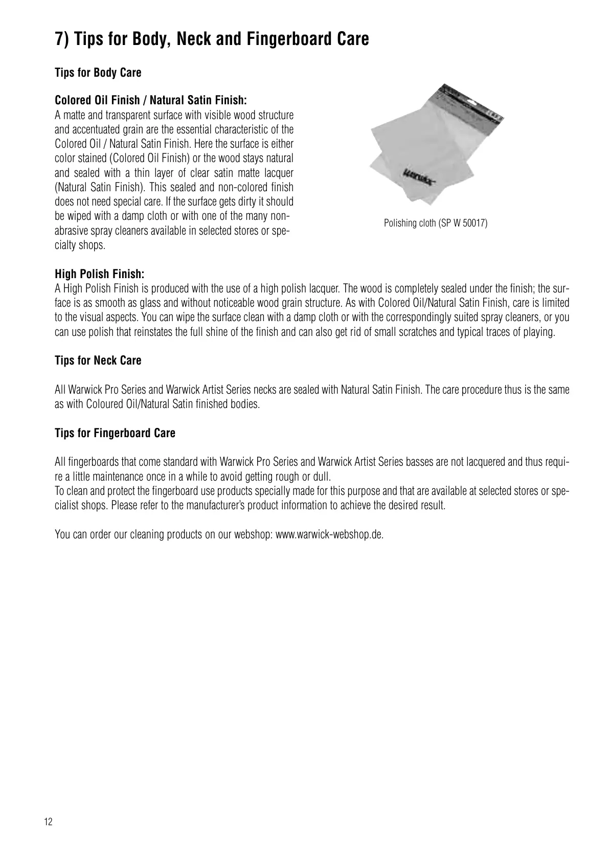 All Warwick Pro Series and Warwick Artist Series necks are sealed with Natural Satin Finish. The care procedure thus is the same