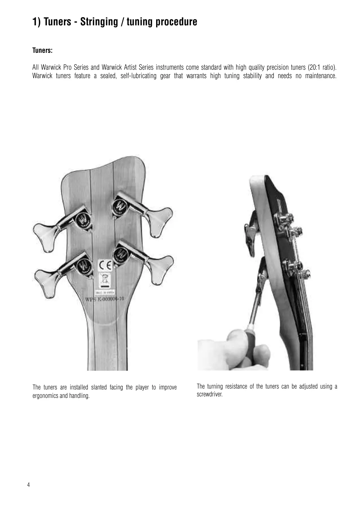All Warwick Pro Series and Warwick Artist Series instruments come standard with high quality precision tuners (20:1 ratio).
