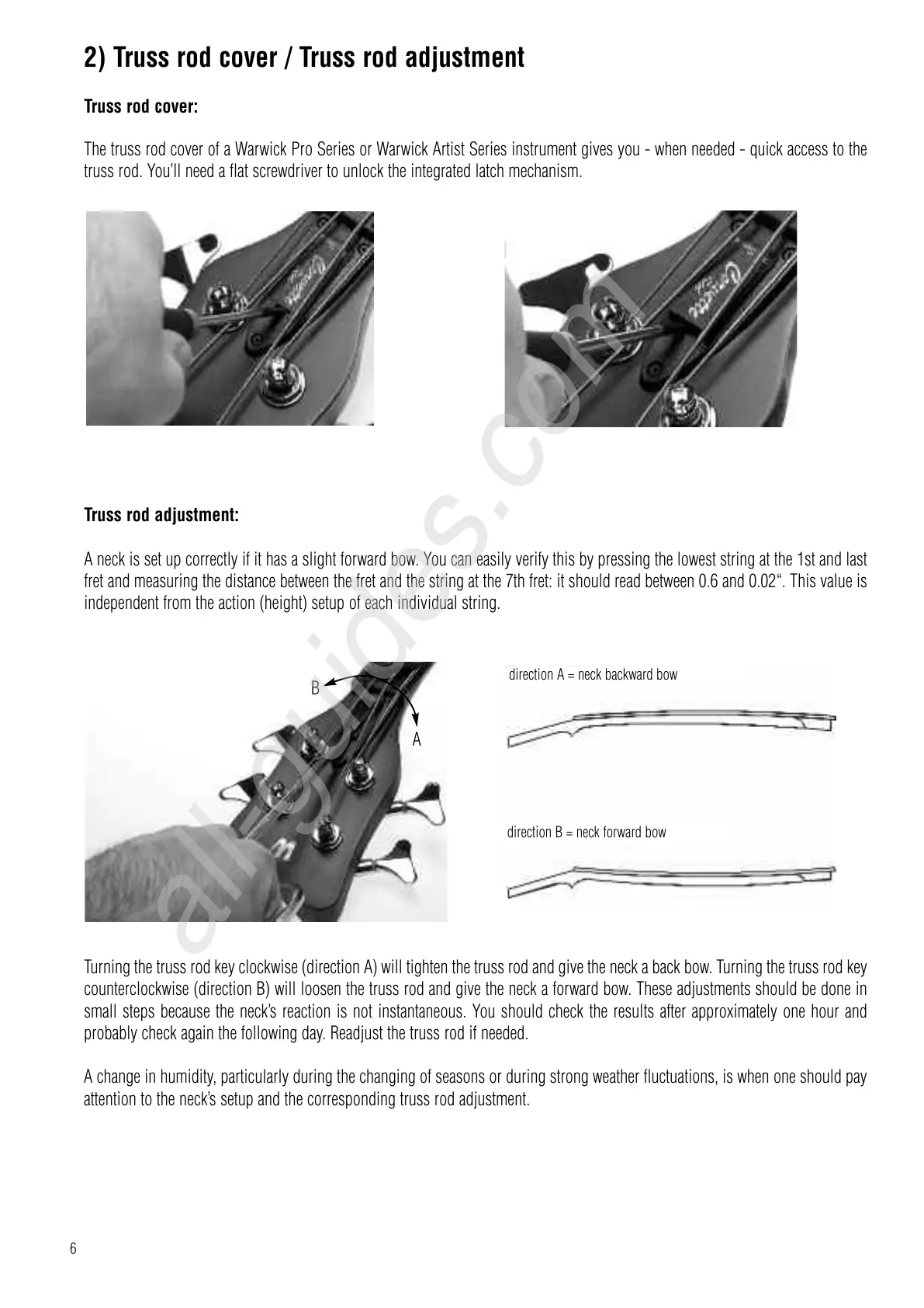 The truss rod cover of a Warwick Pro Series or Warwick Artist Series instrument gives you - when needed - quick access to the
