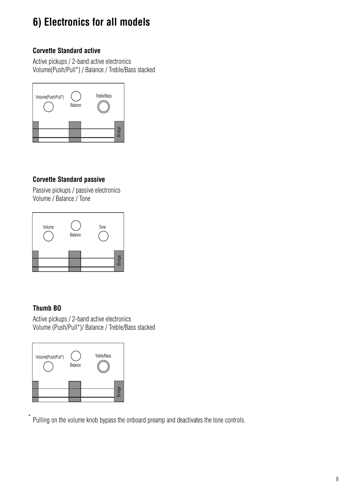 Pulling on the volume knob bypass the onboard preamp and deactivates the tone controls.