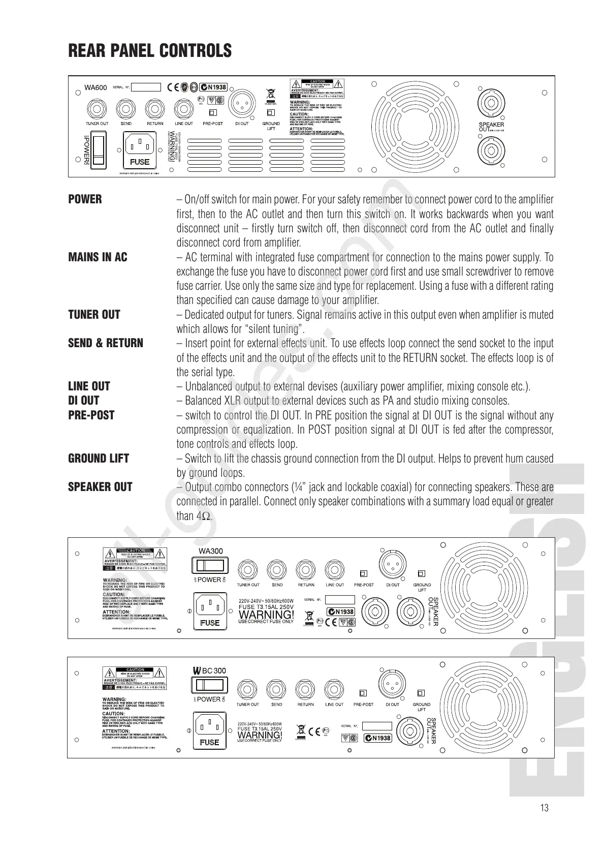 POWER – On/off switch for main power. For your safety remember to connect power cord to the amplifier