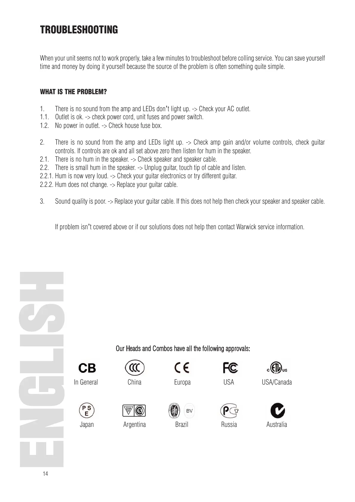 If problem isn’t covered above or if our solutions does not help then contact Warwick service information.