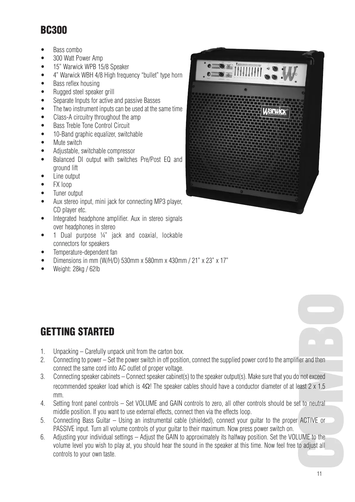 5. Connecting Bass Guitar – Using an instrumental cable (shielded), connect your guitar to the proper ACTIVE or